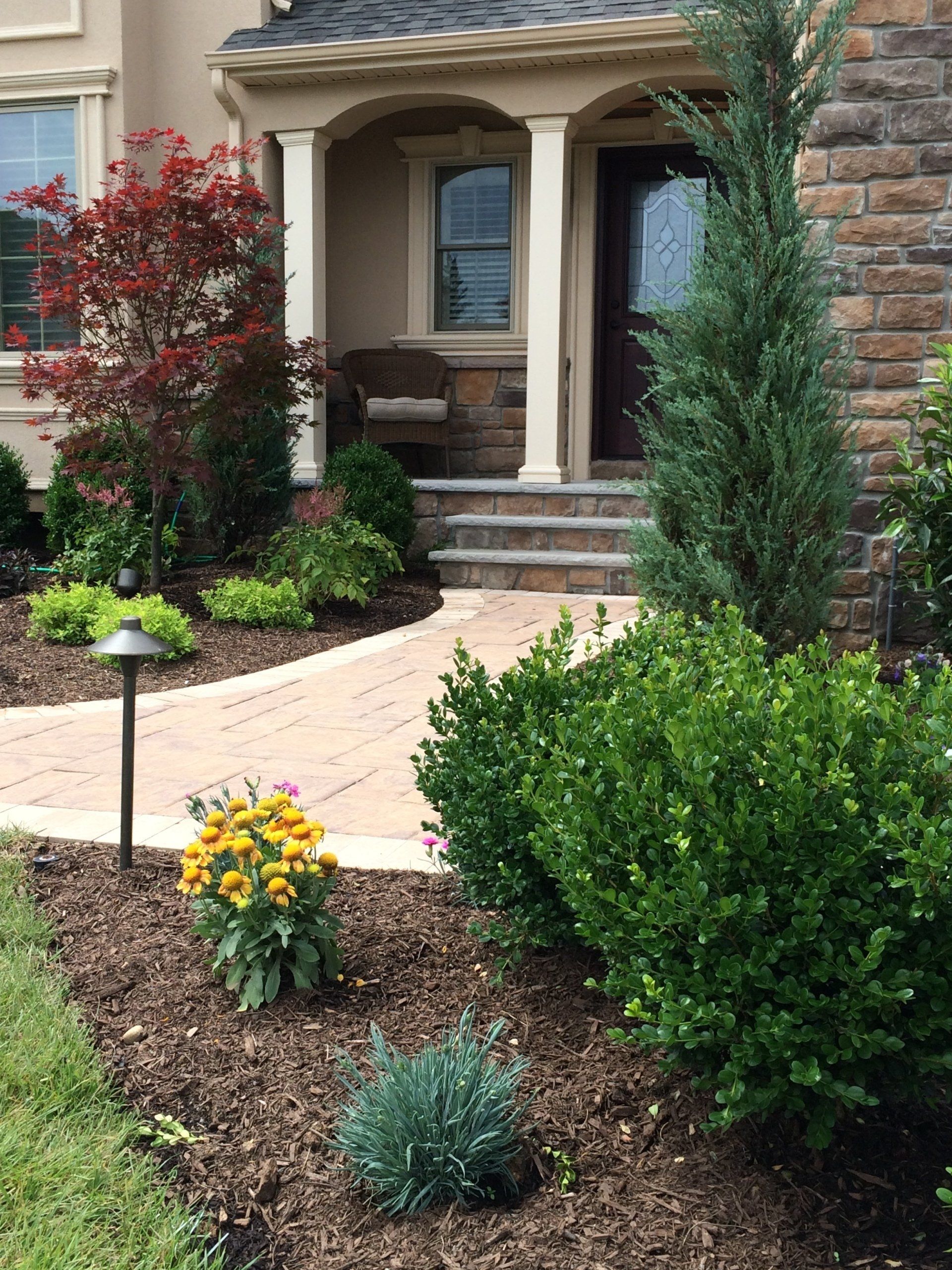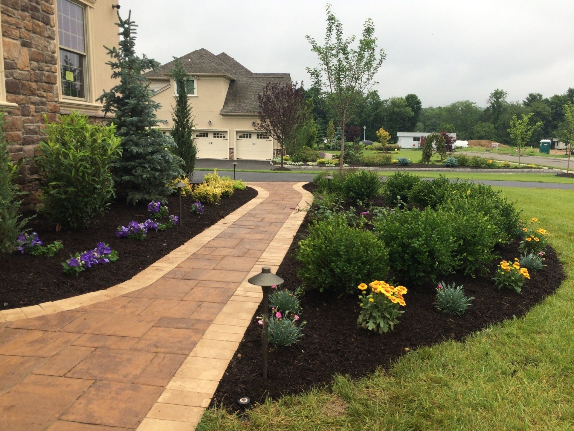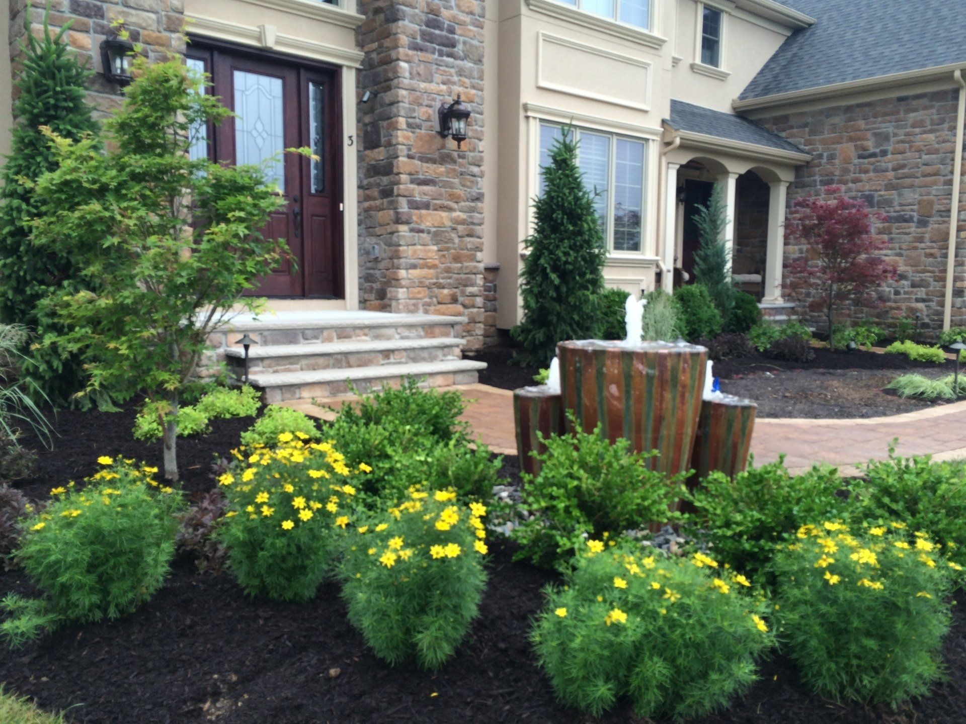 Project Description: For this exciting project, our clients purchased a custom build new home and asked us to develop a plan for the front and rear yard. Our team developed a dramatic front yard design which included a paver walkway, dramatic plantings and a water feature. The backyard is definitely a place to either entertain or relax after a long day at work. Our vision was to bring the indoors to the outdoors. We designed a custom outdoor kitchen/bar with overhead pergola, firepit with seat wall, multiple seating area “rooms”, colorful plantings, and low voltage landscape lighting