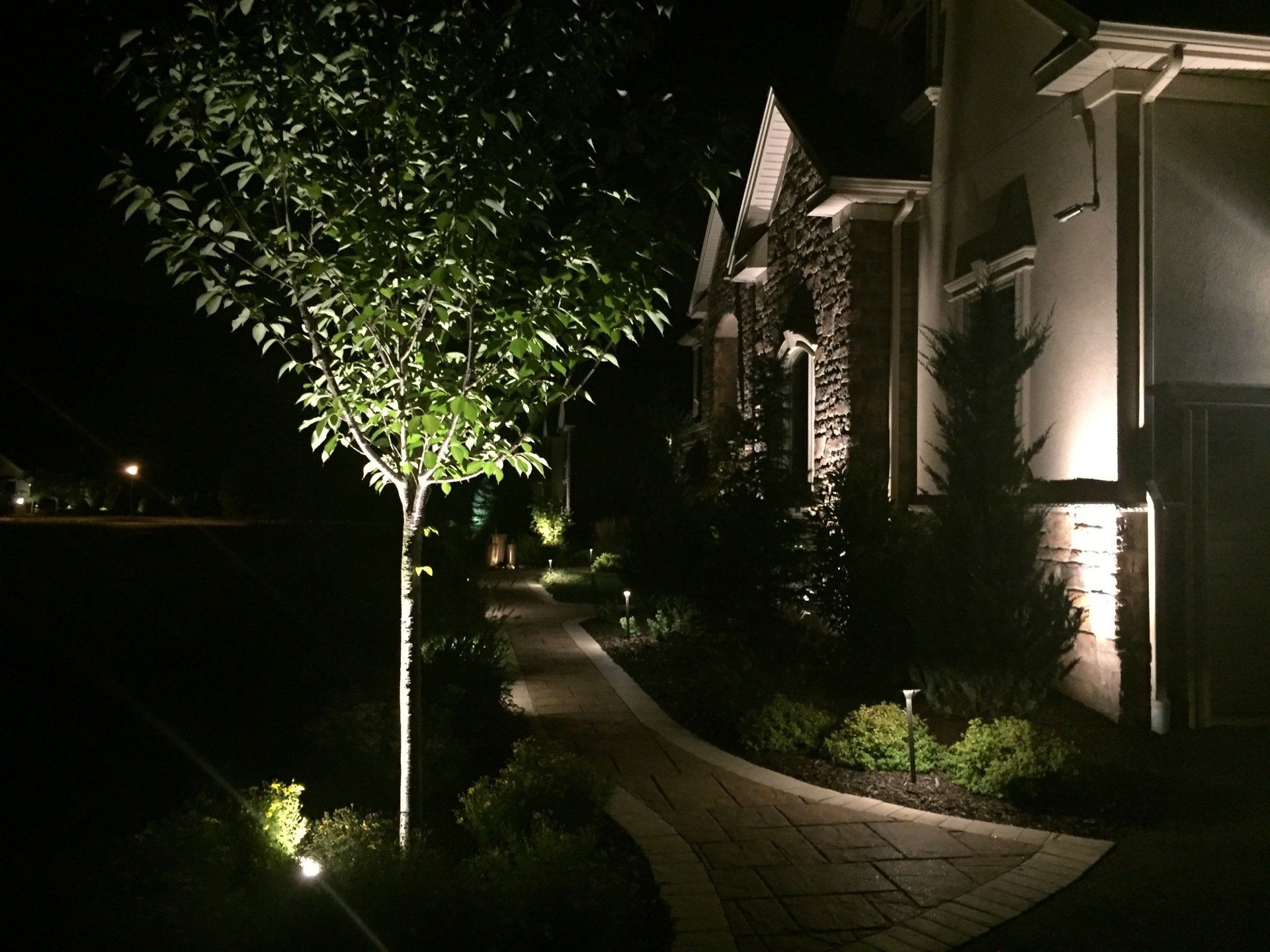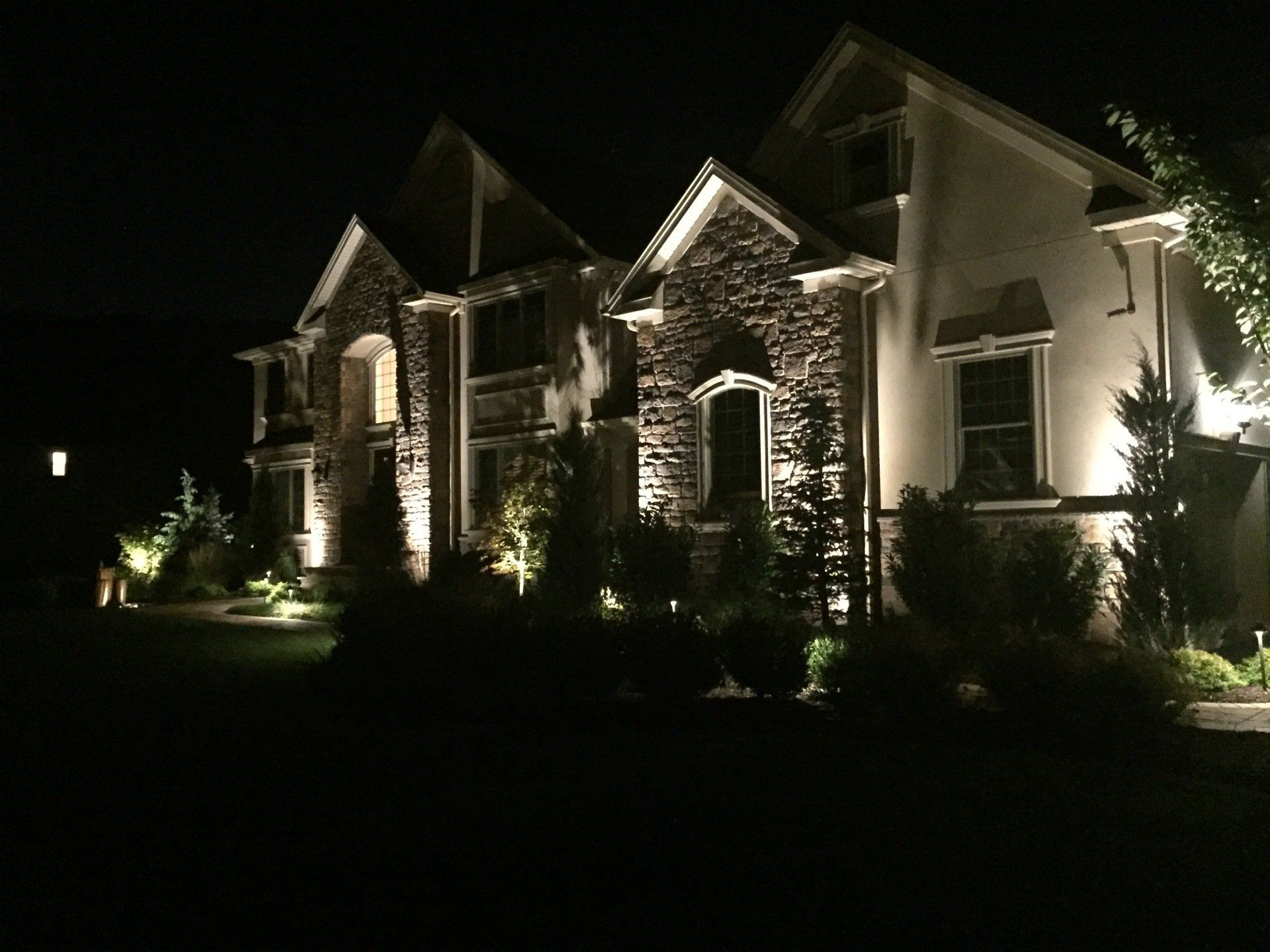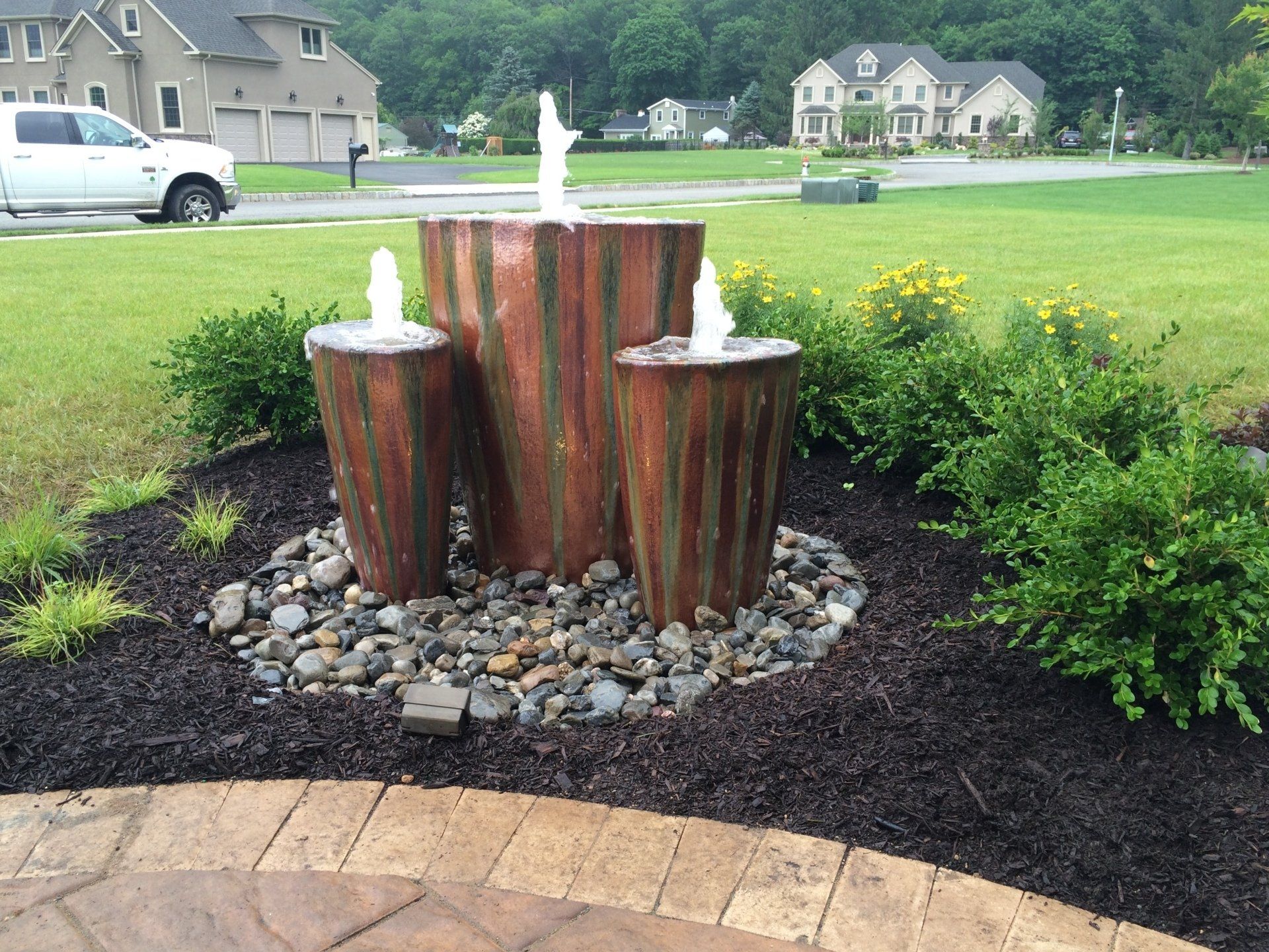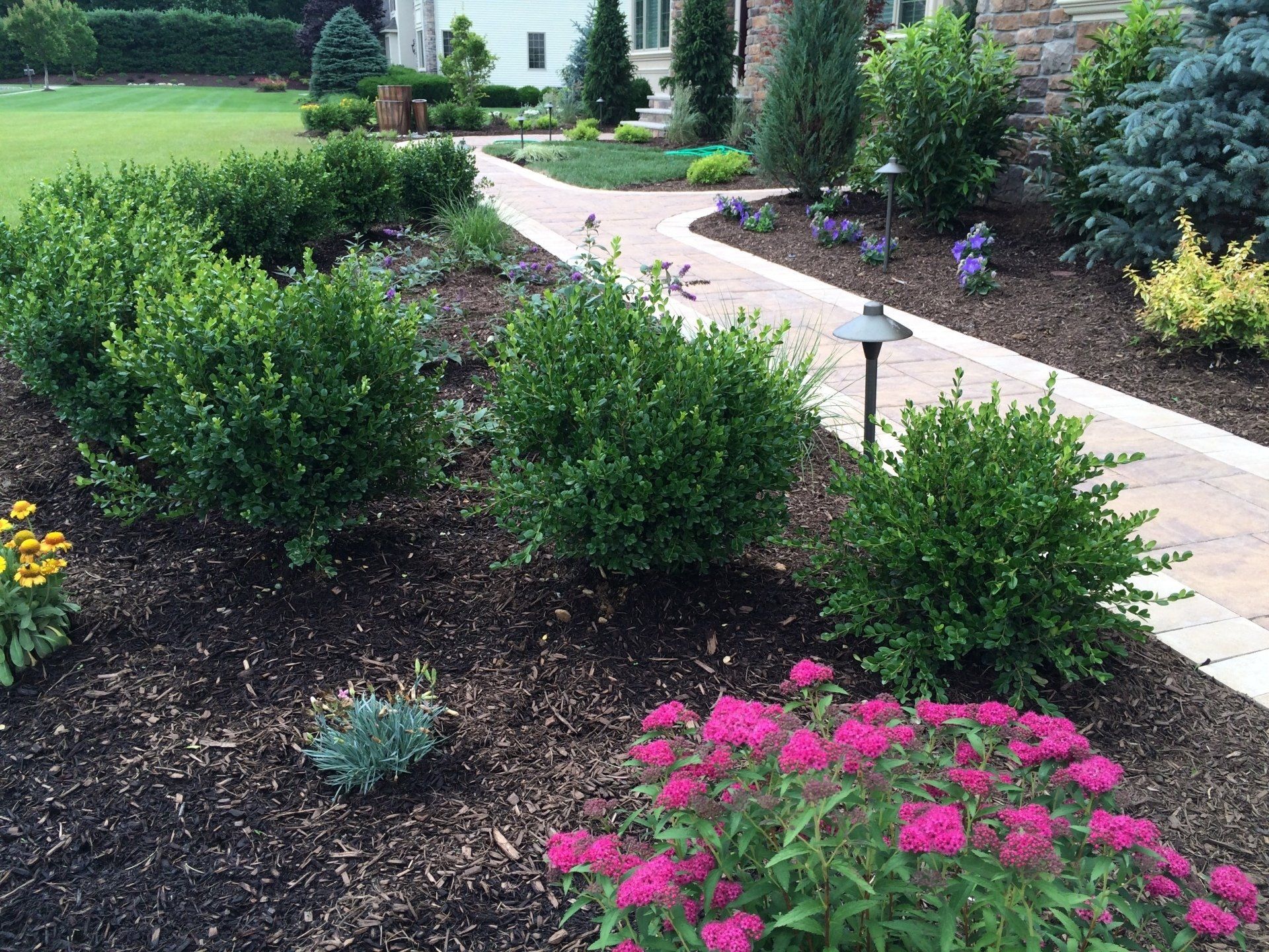 Project Description: For this exciting project, our clients purchased a custom build new home and asked us to develop a plan for the front and rear yard. Our team developed a dramatic front yard design which included a paver walkway, dramatic plantings and a water feature. The backyard is definitely a place to either entertain or relax after a long day at work. Our vision was to bring the indoors to the outdoors. We designed a custom outdoor kitchen/bar with overhead pergola, firepit with seat wall, multiple seating area “rooms”, colorful plantings, and low voltage landscape lighting